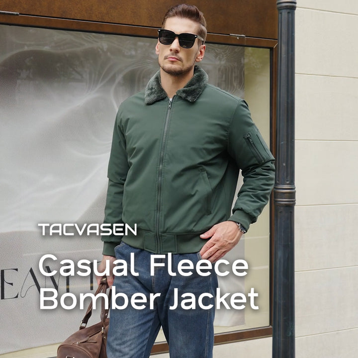 Men's Casual Fleece Bomber Jacket with Fur